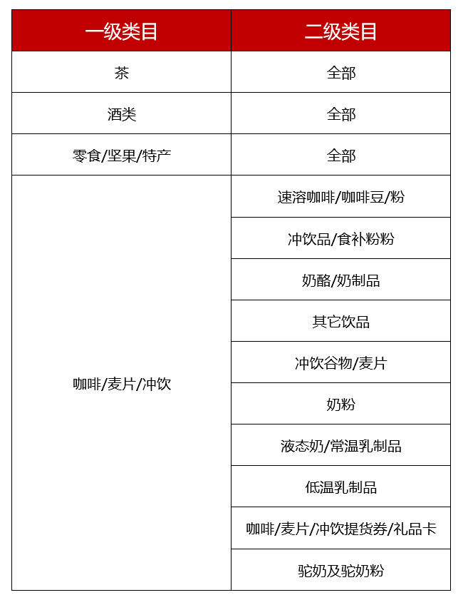 1、商品类目需符合如下:
