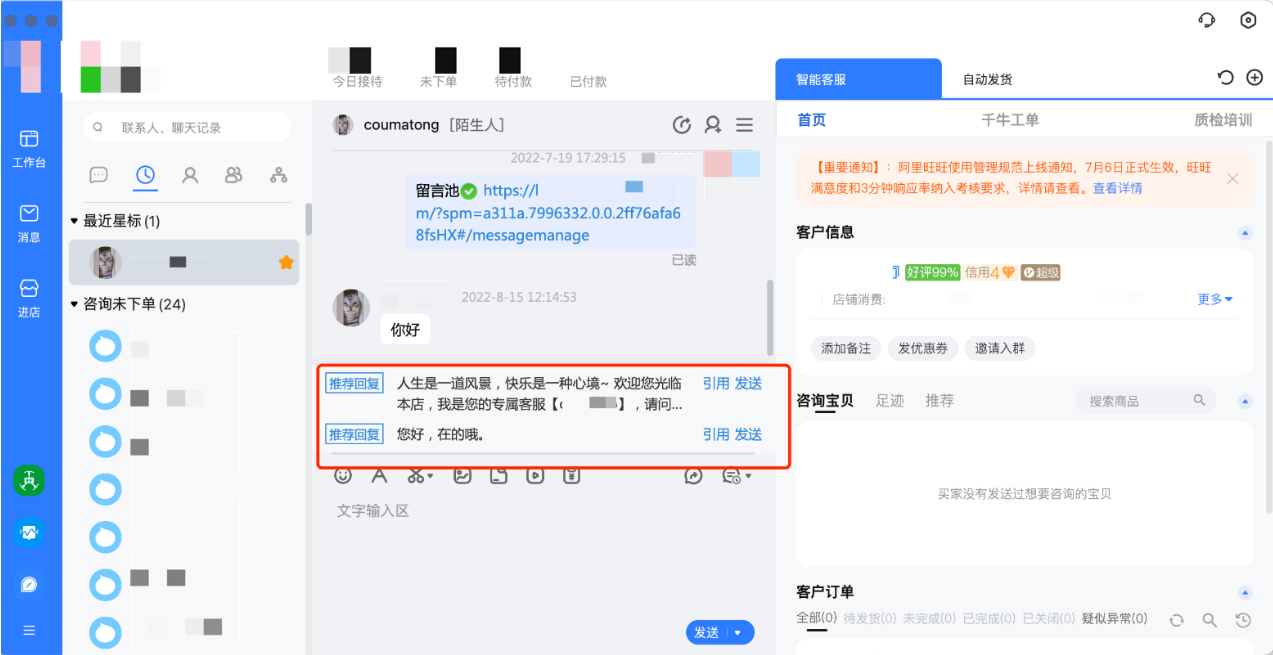 4、聊天框中出现“推荐回复” 这个如何取消掉?