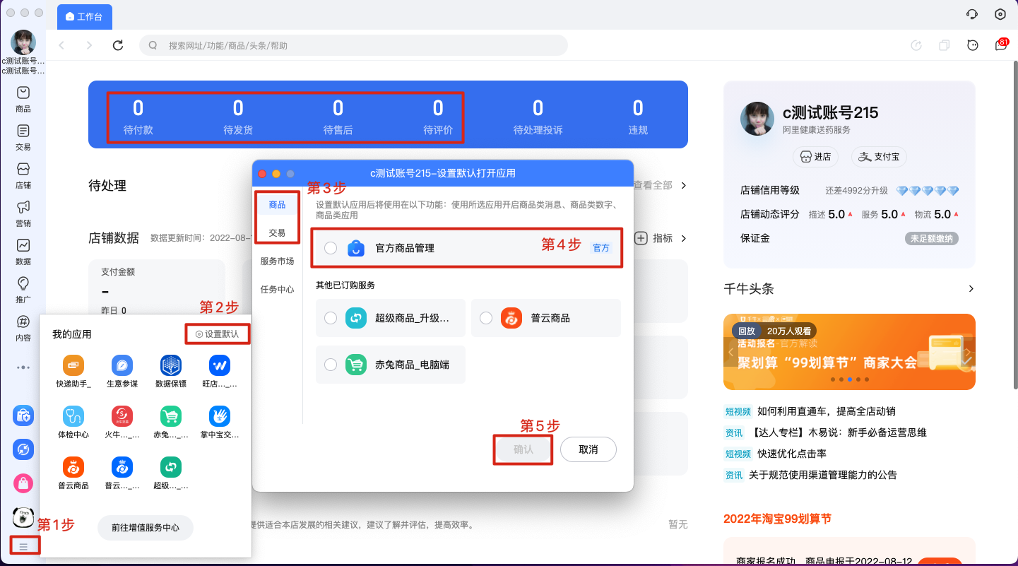 新版Mac千牛工作台常用问题,新版Mac工作台已经支持打开官方工具,需要针对“商品”、“交易” 都需要设置官方的工具