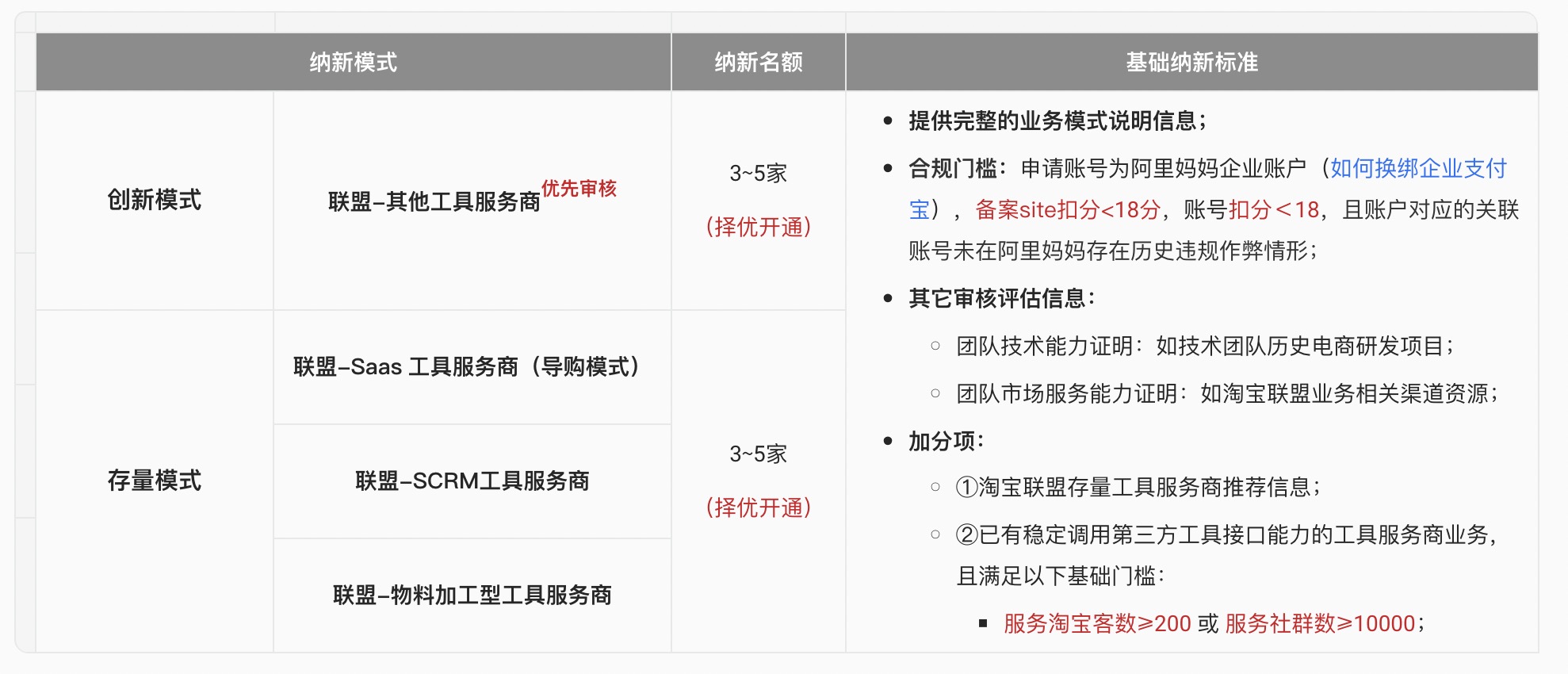 淘宝联盟工具服务商纳新。新引入工具试用期考核要求