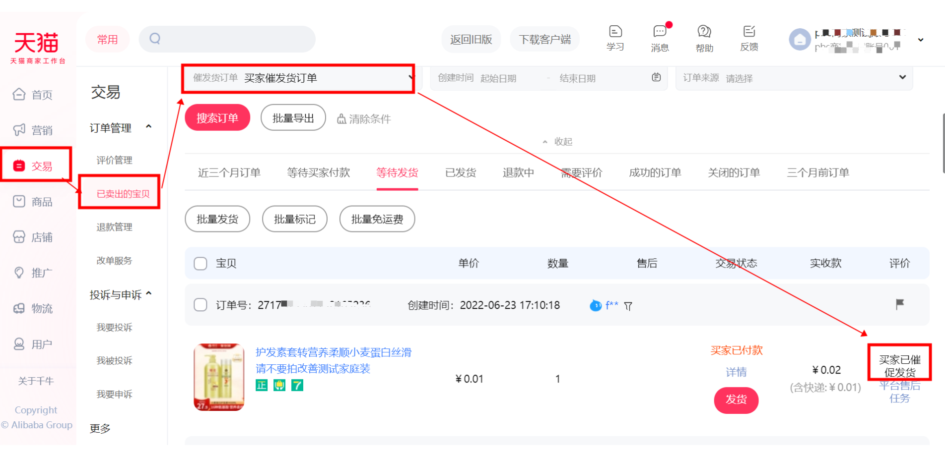 商家可在“交易—已卖出的宝贝—催发货订单”中,筛选出买家催促过发货的订单。