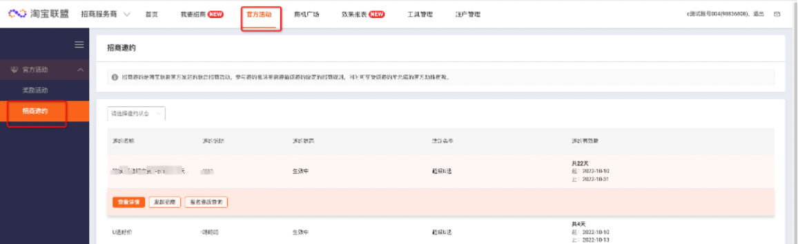 方式一:服务商后台-官方活动-招商邀约-报名资格查询