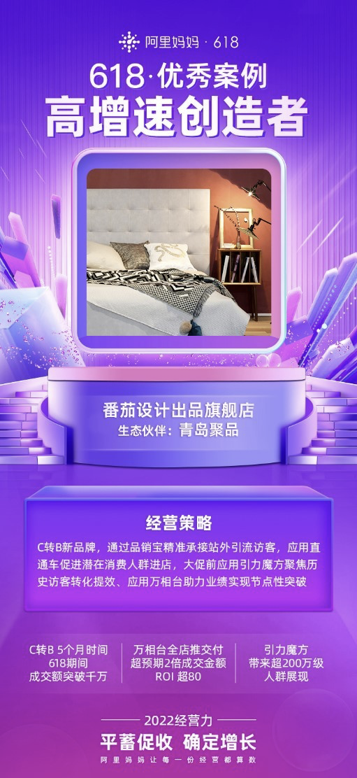 其中,“番茄设计出品”这个品牌,在众多家居品牌中成绩十分亮眼。该品牌原为淘宝商家,今年2月份转入天猫,主打具有设计风格的床,为年轻人提供提供更有格调的睡眠体验,上线不到5个月,生意规模即在大促期间快速破千万。让我们一起看看,它究竟做对了什么?