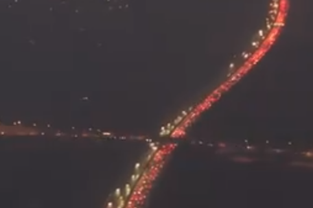 近日,临近年关,高速路上车辆增多。用航拍记录多地高速堵车画面,视频中灯火通明连“长龙”。