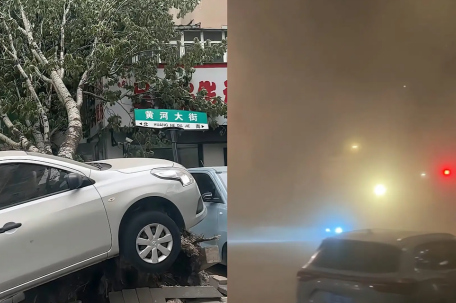 河南出现15级大风 落地窗被整扇拔掉