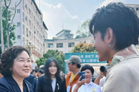 5月9日,第三届“老山国际春茶节”开幕,华春莹与丁真同框,华春莹让丁真为麻栗坡人民好好推荐普洱茶。