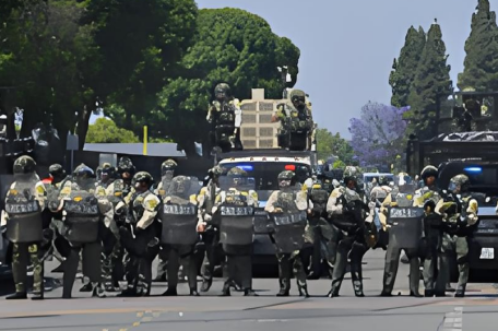 美国洛杉矶警方向抗议人群开枪英文可以简单翻译为:The Los Angeles Police Department in the United States opened fire on protesters.。