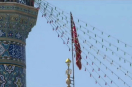 伊朗“圣城”清真寺升起复仇红旗英文可以简单翻译为:The "Holy City" mosque in Iran has been lit with a red flag of revenge.。