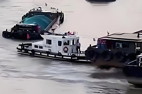 两艘大船失控 海事船力挽狂澜英文可以简单翻译为:Two large vessels have lost control. The maritime authorities are scrambling to save the situation.。