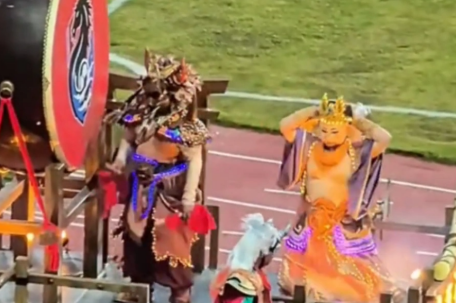 淮安主场再现猪八戒魔性扭屁股英文可以简单翻译为:Huai'an home court once again showcased the eccentricity of Zhu Bajie, with a bizarre hip twist.。