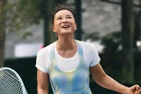 贾玲和汪顺打网球 身材苗条活力满满英文可以简单翻译为:Jia Ling and Wang Shun play tennis, their slender figures and vibrant energy are evident.。